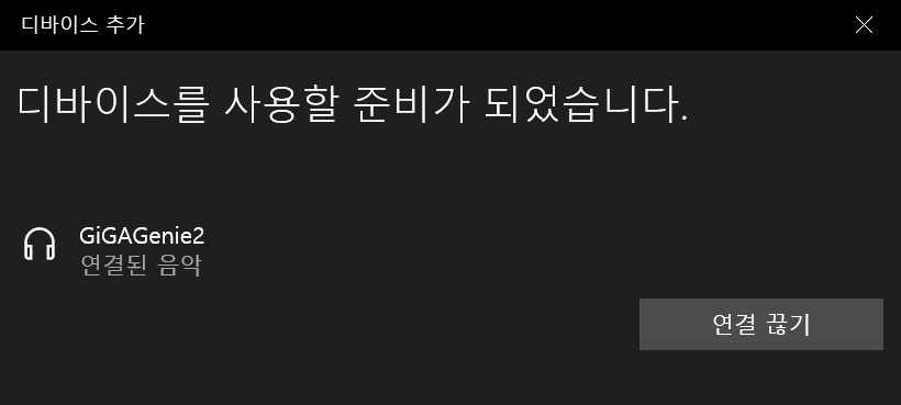 기가지니 : 블루투스 스피커가 연결되었습니다.