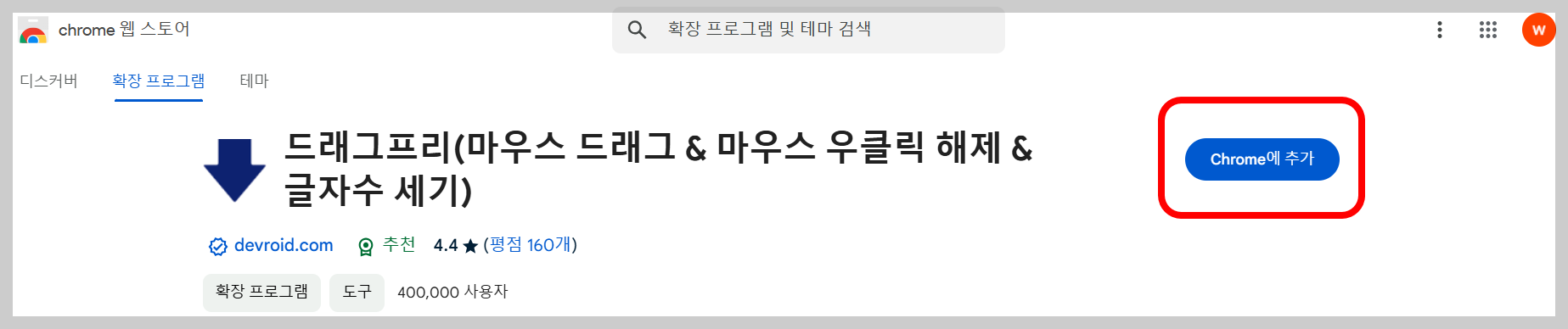 2. 그리고 웹스토어에서 "드래그프리"를 검색한다. 또는 이곳으로 가자.